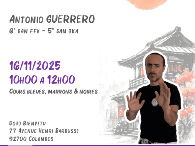 Le CDKarate92 organise un stage de Karaté avec Christian CLAUSE (9ème dan – expert national) le samedi 15 novembre 2025 de 15h30 à 17h30.