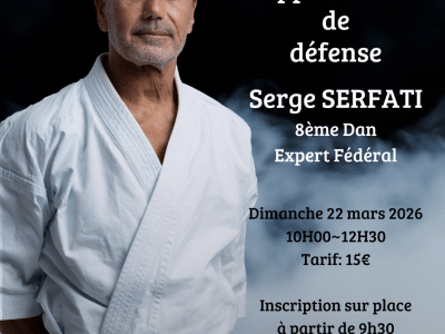 Le Karaté Club de Vaucresson organise un stage de karaté avec Serge SERFATI (8ème dan et expert fédéral) le dimanche 22 mars 2026 de 10h00 à 12h30 à Vaucresson (92).