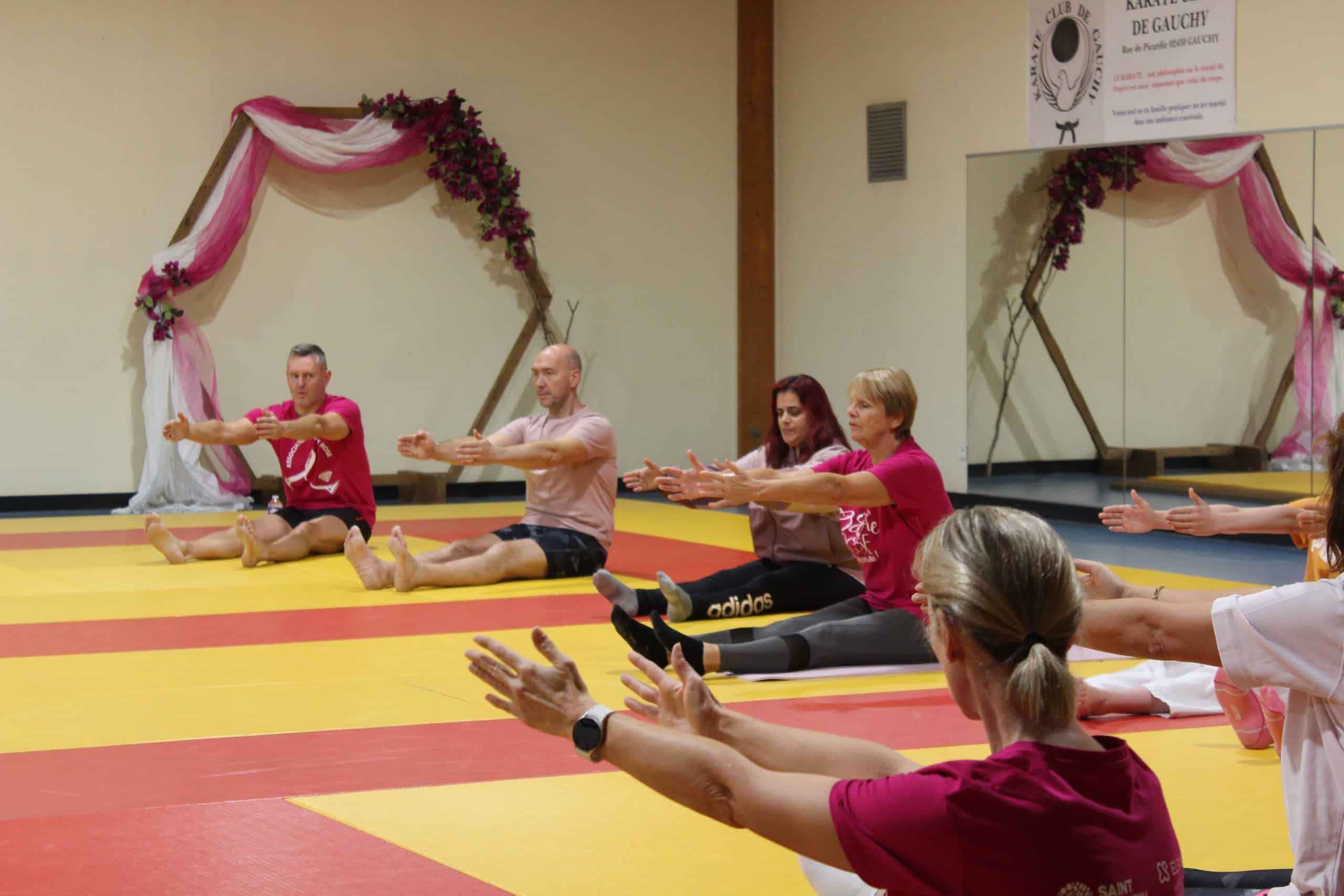 Dimanche matin, Le karaté club de Gauchy accueillait le stage Octobre Rose, réussite totale, une quarantaine de personnes ont participé, pilates et body karaté étaient au programme.