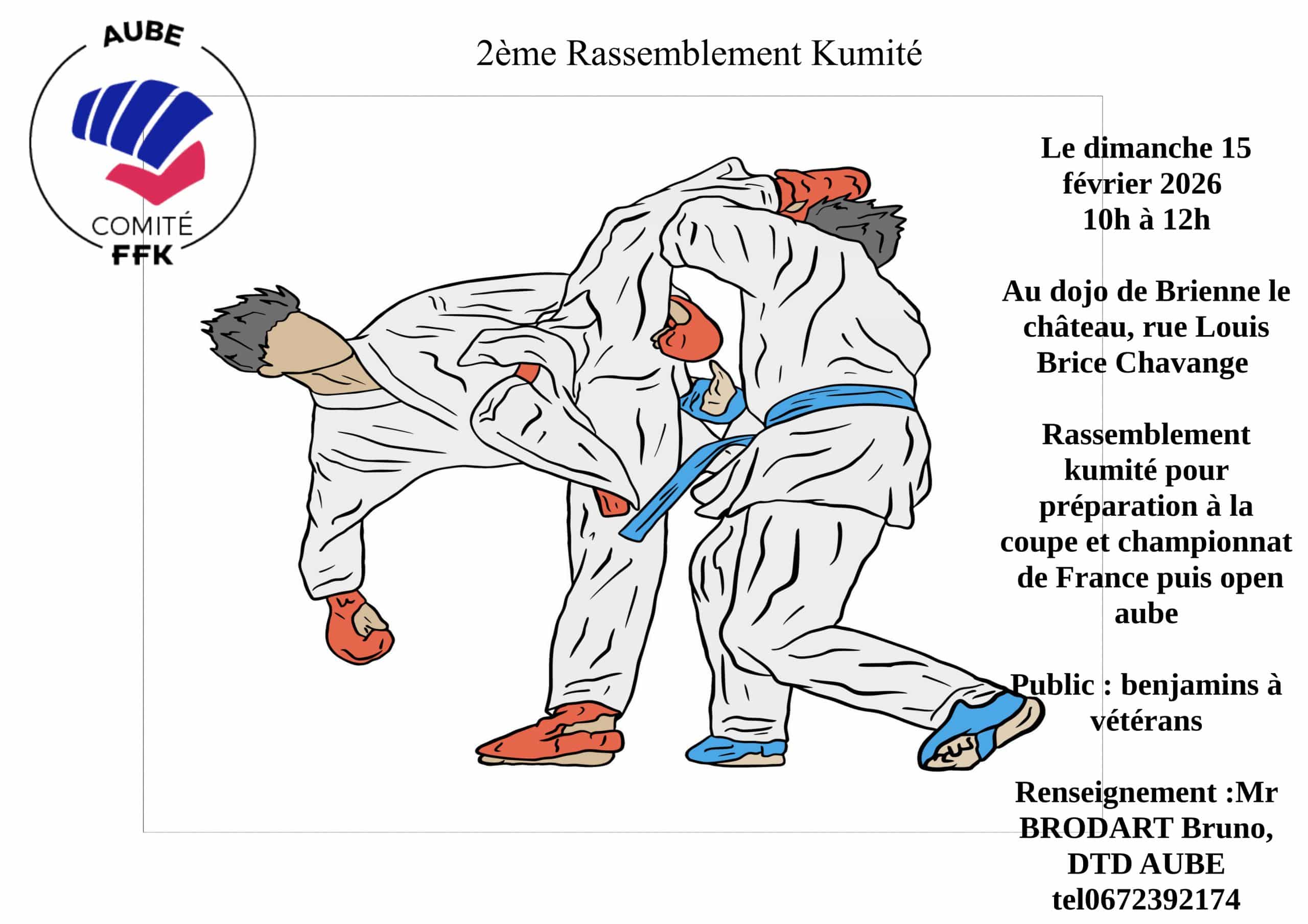 2ème rassemblement kumite Date Dim. 15 Février 2026 de 10h à 12h Lieu Dojo - Rue Louis Brice Chavange - 10500 Brienne le Chateau