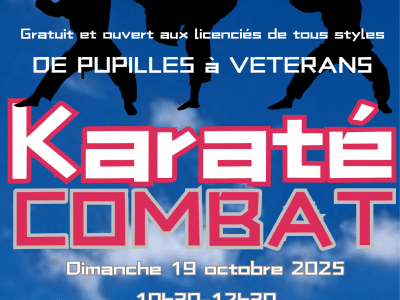 Entrainement combat du département de l'Aude ouvert à tous licenciés de pupilles à vétérans. Dimanche 19 octobre 2025 au Dojo de la Cité des Sports de Carcassonne de 10h30-12h30. (avenue du Général Sarrail) Gratuit