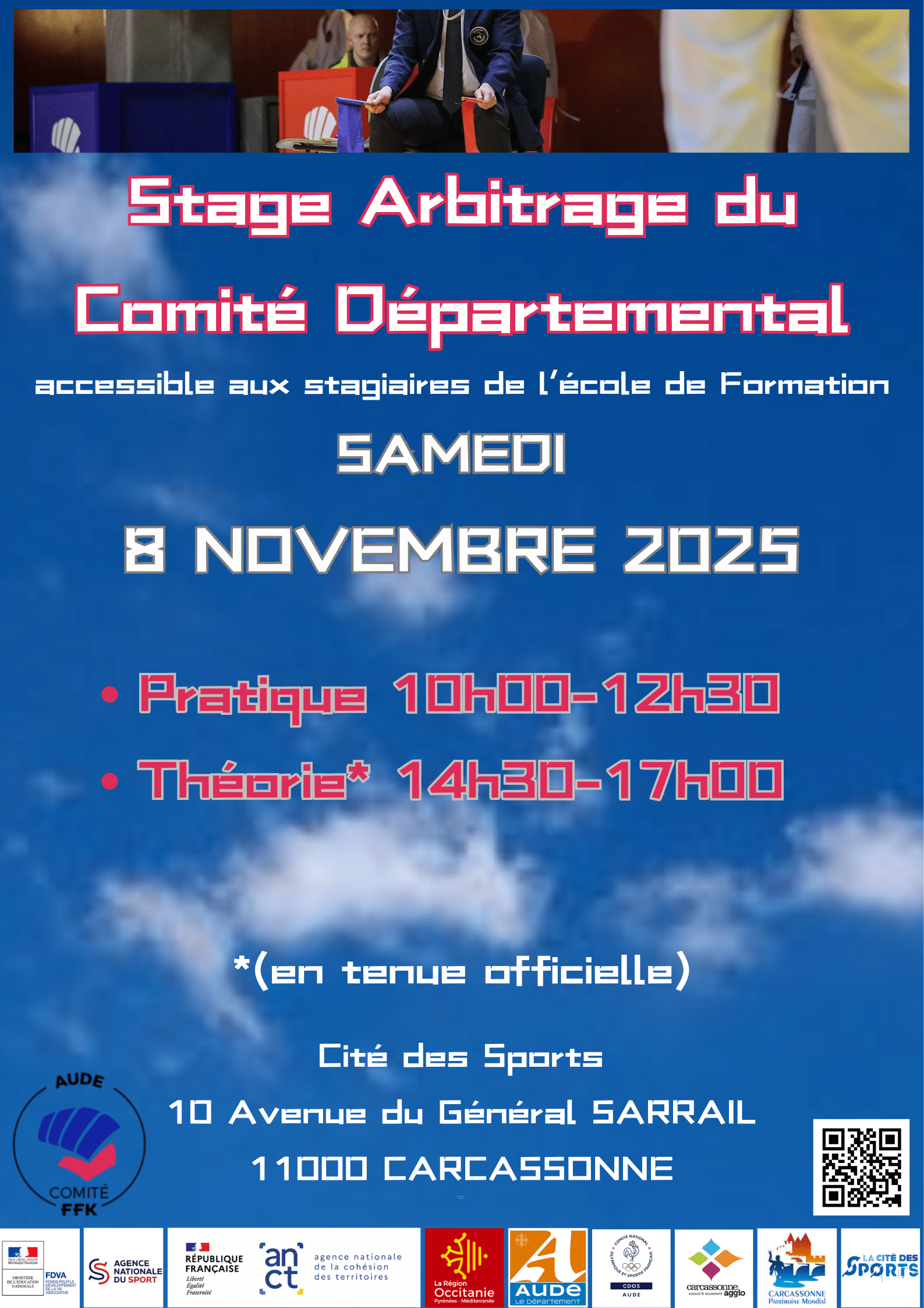 Stage arbitrage . Pratique 10h00/ 12h30 et théorie 14h30/17h00
