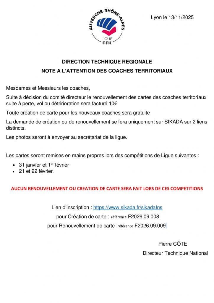 NOTE A L’ATTENTION DES COACHES TERRITORIAUX