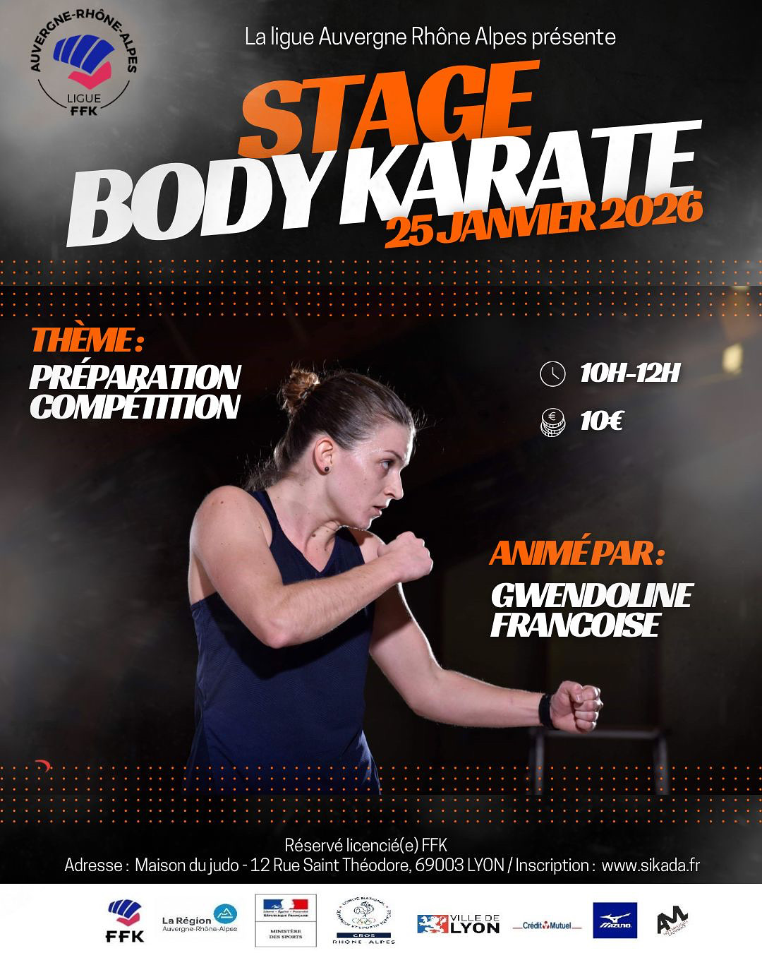 STAGE BODY KARATE / PREPARATION A LA COMPETITION Date Lun. 26 Janvier 2026 de 10h à 12h Lieu MAISON DU JUDO12 RUE SAINT THEODORE 69003 LYON