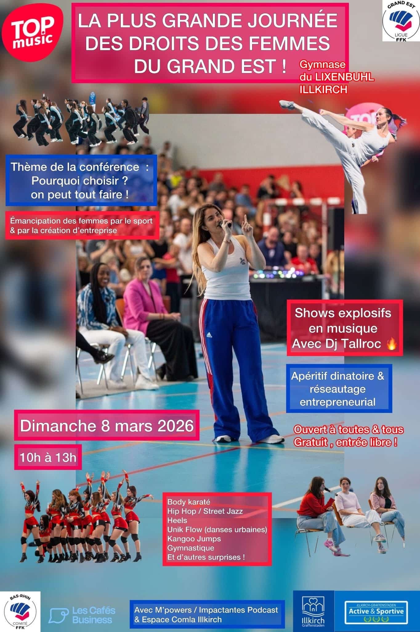 Journée des Droits des Femmes du Grand Est, avec Laurence Belrhiti / Illkirch-Graffenstaden Date Dim. 8 Mars 2026 de 10h à 13h Lieu Complexe sportif Lixenbhul Illkirch