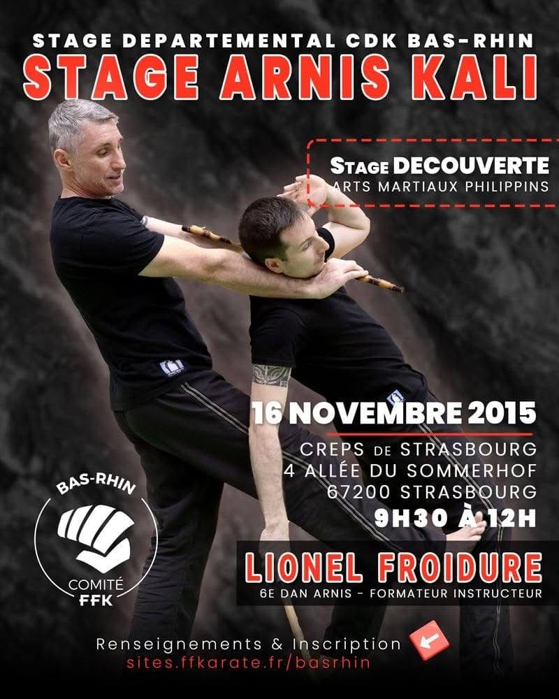CDK67 – Stage gratuit / Découverte Arts Martiaux Philippins avec Lionel Froidure 6e Dan Arnis – Formateur Instructeur