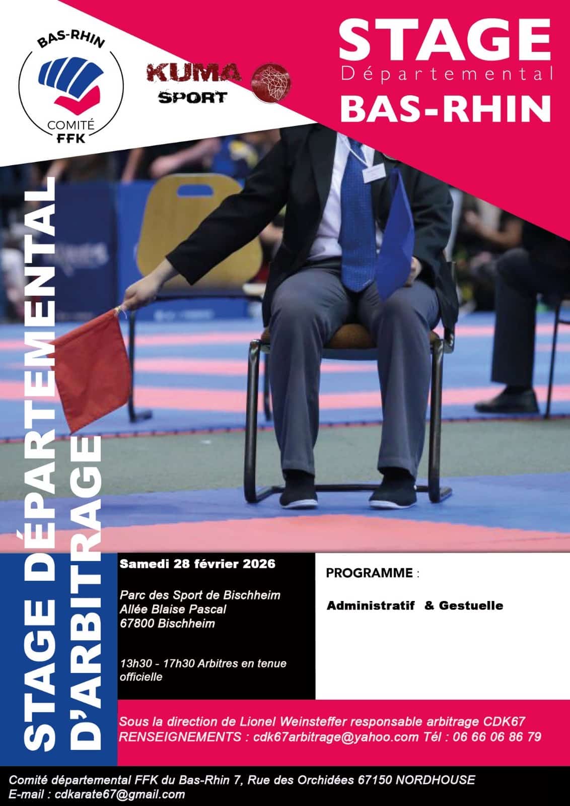 Stage d’arbitrage CDK 67 // REPORTÉ !!! (Reporté) Date Sam. 28 Février 2026 de 13h30 à 17h30 Lieu Parc des Sports Allée Blaise pascal 67800 Bischheim