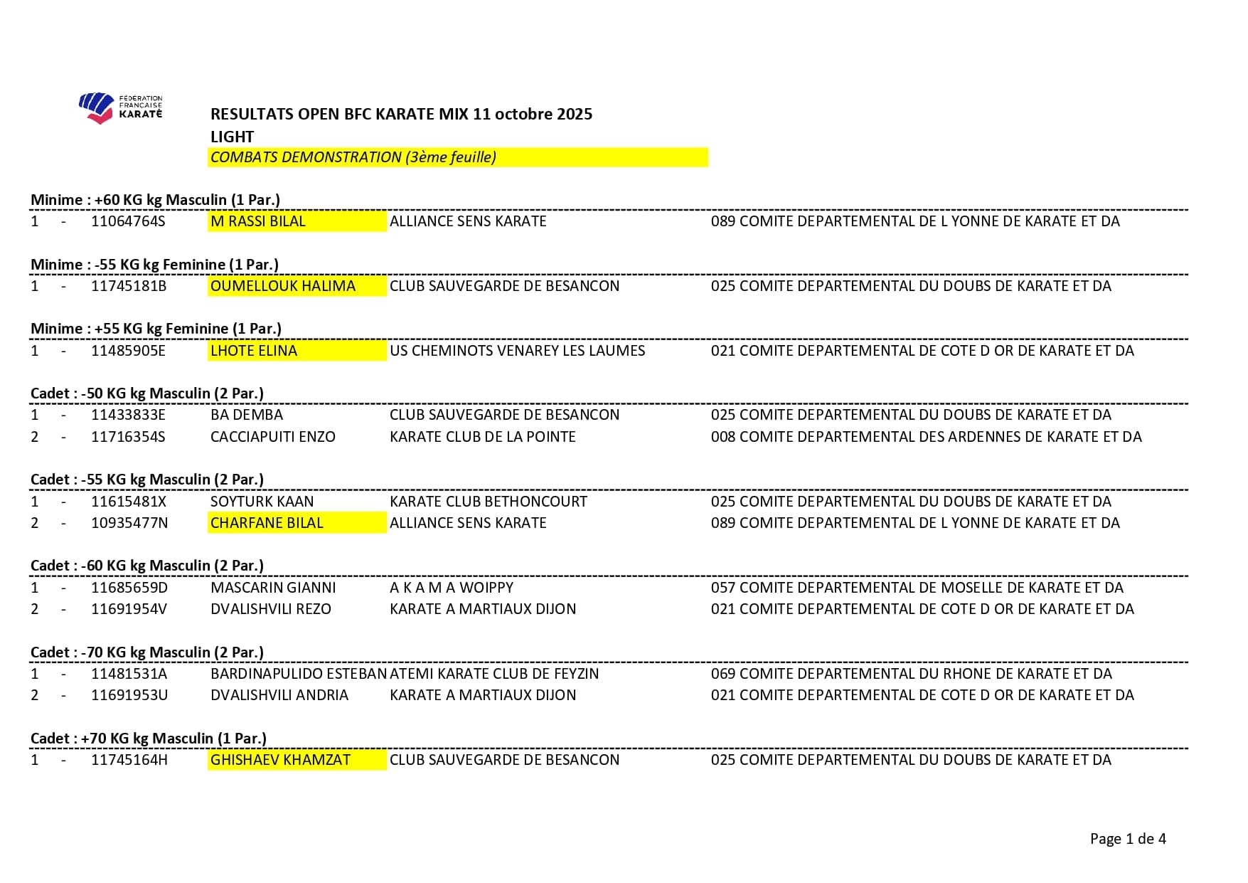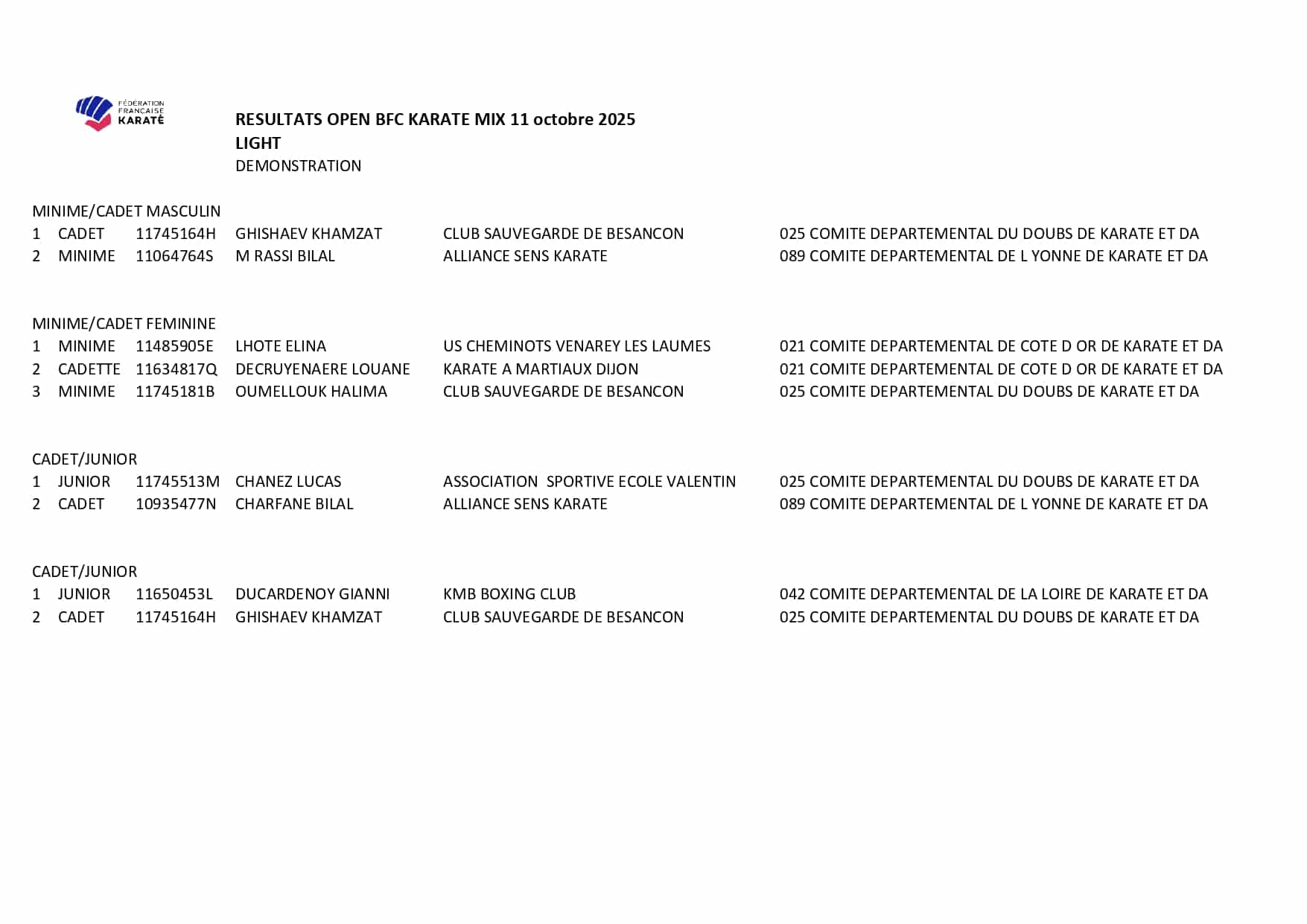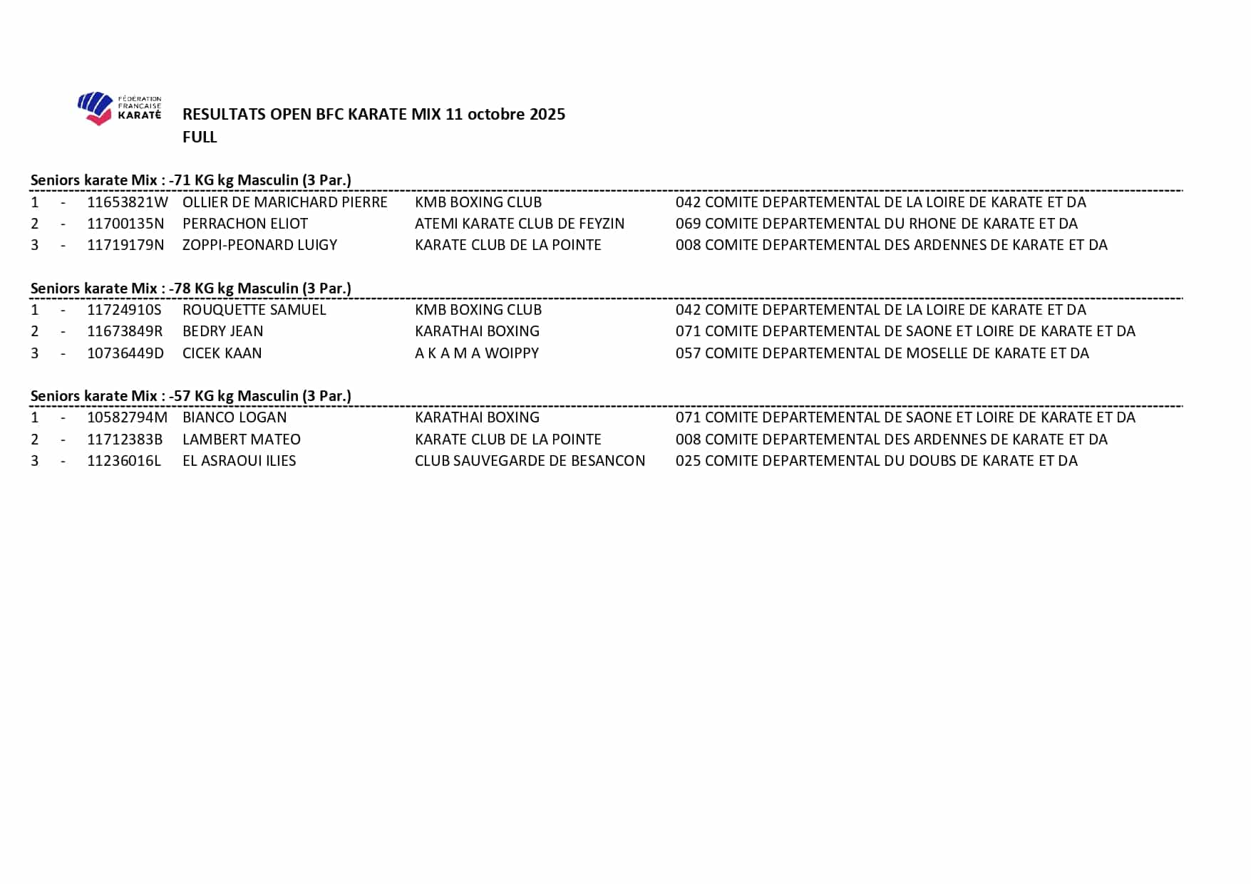 Compte Rendu et Résultats OPEN KARATE MIX du 11 octobre 2025 25 octobre 2025 Actualités Compétitions Karaté Karaté Mix Ligue Régionale BFC Résultats