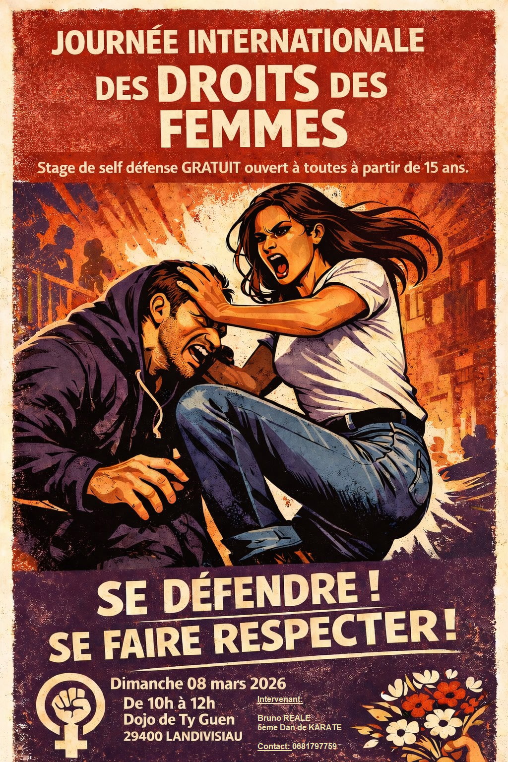 stage gratuit réservé aux femmes à partir de 15 ans, à l’occasion de la journée internationale des droits des femmes.