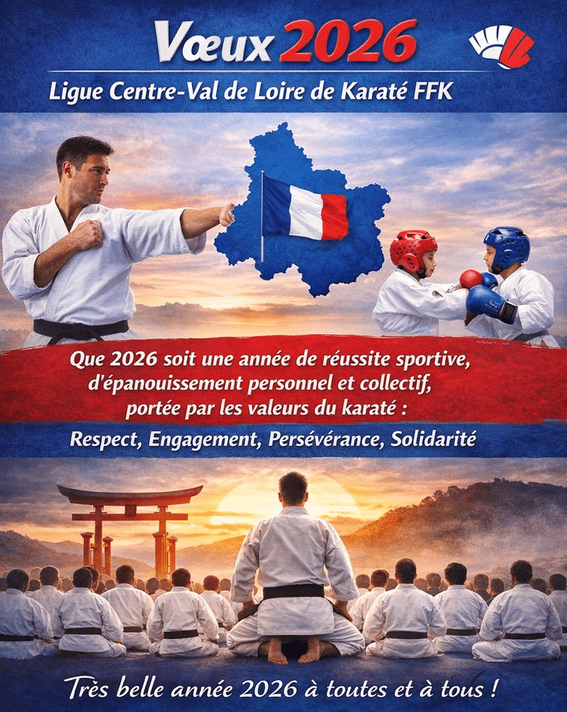 À l’aube de cette nouvelle année 2026, nous tenons à vous adresser nos vœux les plus chaleureux de bonheur, de santé et de réussite. Que cette année soit synonyme de passion, de progrès et de solidarité au sein de notre grande famille du Karaté, que chacun puisse s’épanouir dans sa pratique, découvrir de nouveaux horizons et partager des moments forts.