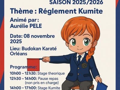 C’est parti pour la saison 2025-2026 ! Le premier stage d’arbitrage de la saison se déroulera le samedi 11 octobre à vendôme (Dojo des Grands Prés). Il sera animé par la responsable régionale, Aurélie Pelé. Depuis le changement de règlement, ce stage et s’adresse est ouvert à tout licencié. Coachs, compétiteurs et professeurs sont les bienvenus.