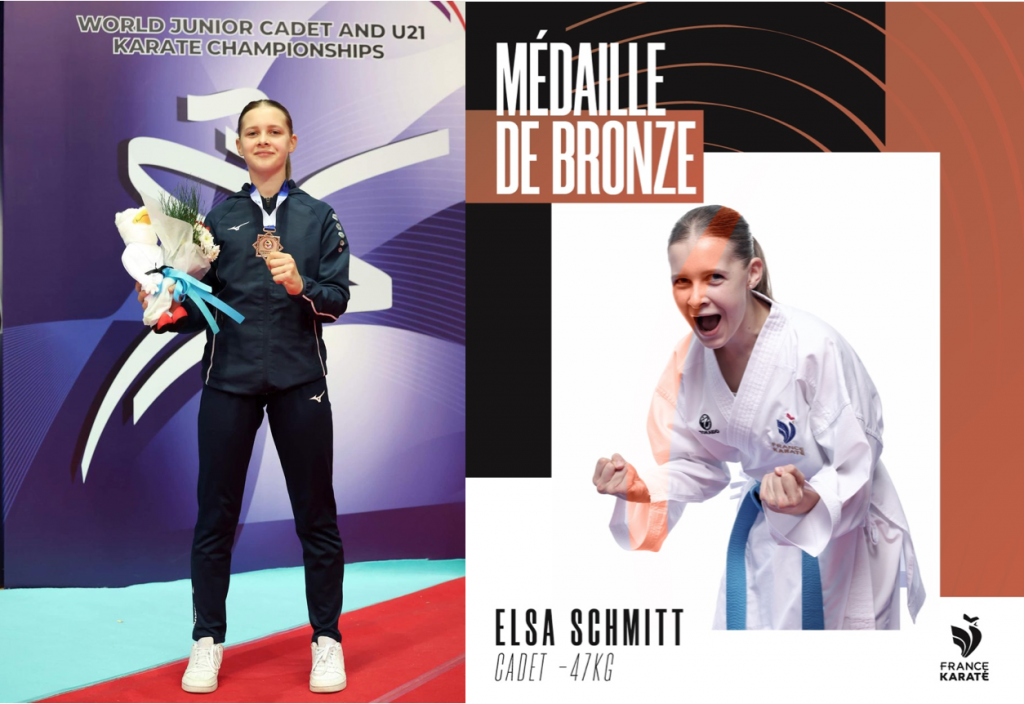 Elsa SCHMITT, du Karaté-Do Sarralbe, représentait la France dans la catégorie Cadettes – 47 KG.