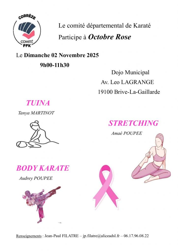 Octobre Rose – Dojo Municipal de Brive Date Dim. 2 Novembre 2025 de 09h à 11h30 Lieu Dojo Municipal de Brive Avenue Léo Lagrange 19100 Brive