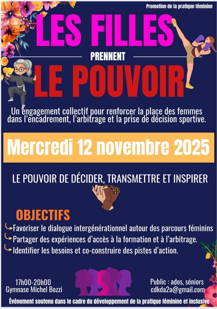 Cette action vise à créer un espace d’échanges intergénérationnels entre pratiquantes, formatrices et arbitres, afin d’identifier les freins à la féminisation et de faire émerger des solutions concrètes.