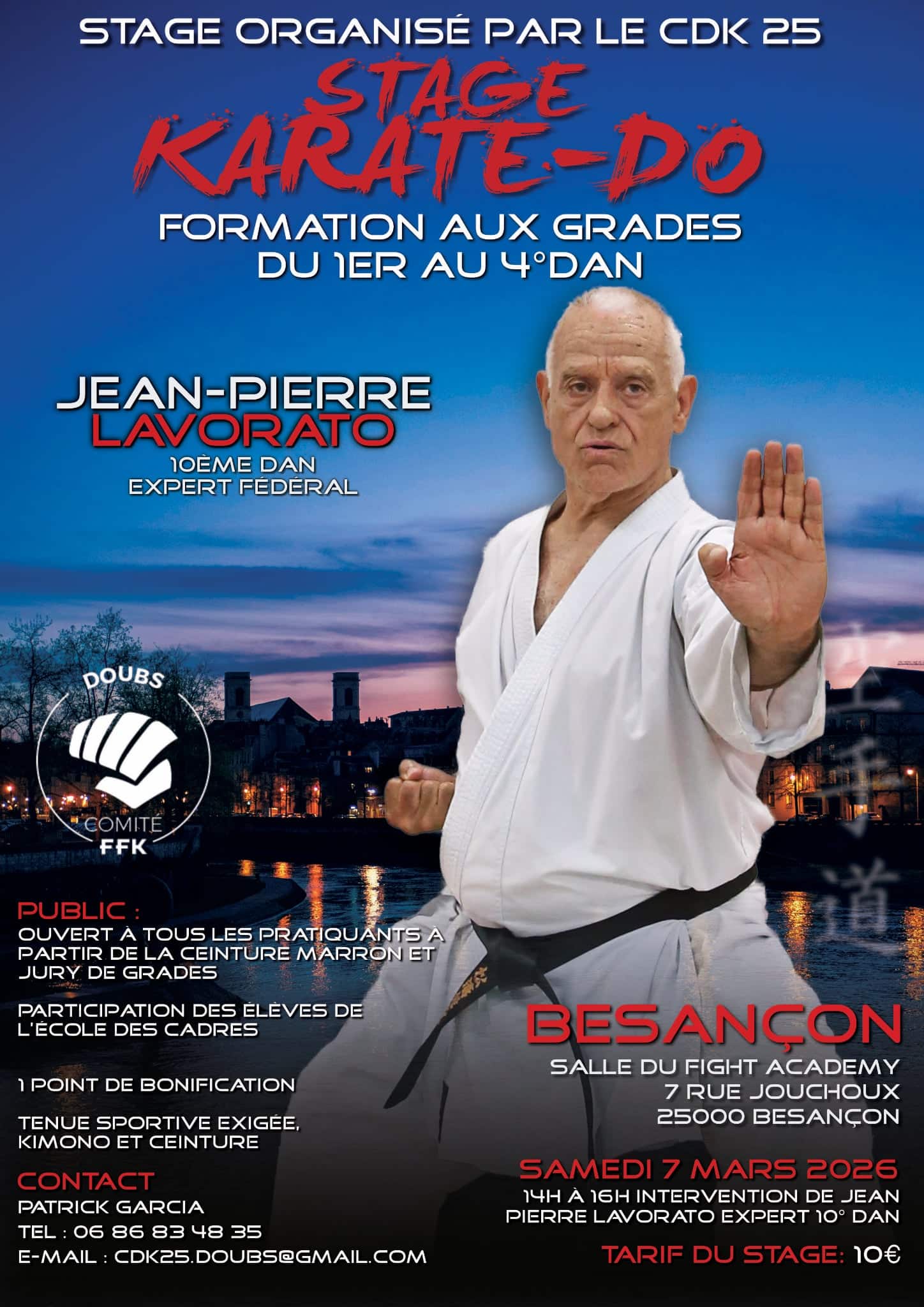 Stage Formation aux grades avec Lavorato Date Sam. 7 Mars 2026 de 14h à 16h Lieu Salle du Fight Academy - 7 rue Jouchoux - 25000 Besançon