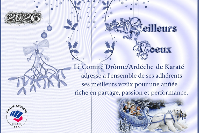 Le comité Drôme/Ardèche de karaté souhaite à l’ensemble de ses licenciés une très belle année 2026, placée sous le signe du respect, du partage et de la réussite sportive.