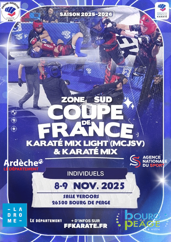 le samedi 8 novembre 2025 : Coupe de France Zone Sud Karaté Mix Light MCJS – Individuel