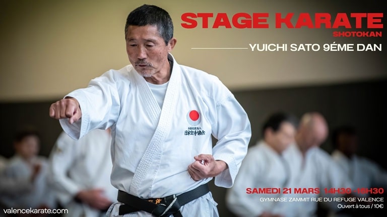 Samedi 21 mars de 14h30 à 16h30. Le Valence Karaté organise pour la 6éme année consécutive un stage de karaté dirigé par l’expert Japonais Yuichi SATO 9éme dan.