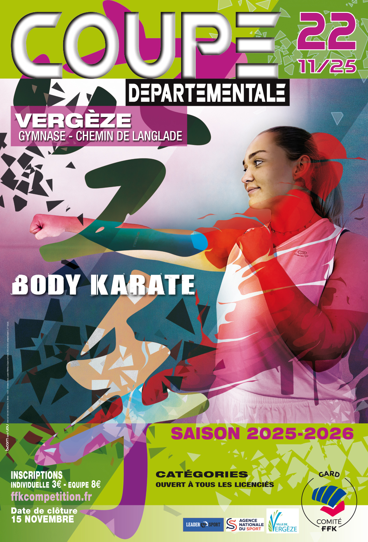 COUPE BODY KARATE Date Sam. 22 Novembre 2025 Lieu VERGEZE - VERGEZE (30)CHEMIN DE LANGLADE 30310 VERGEZE