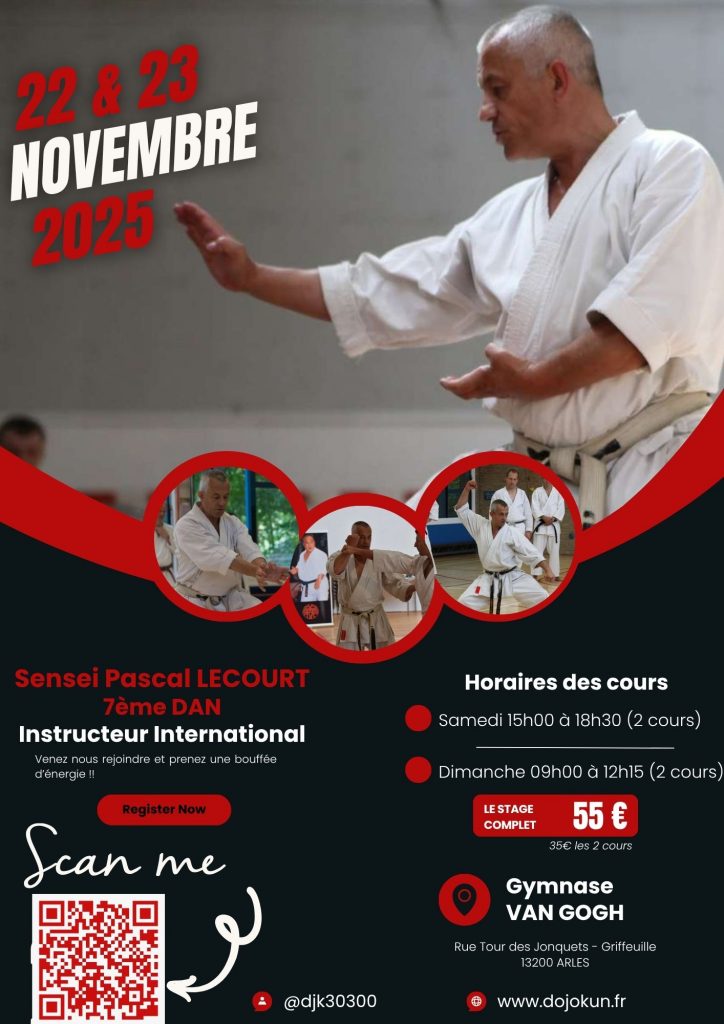 Nous avons l’immense plaisir d’accueillir Sensei Pascal Lecourt, 7e Dan et Instructeur International, à ARLES les 22 & 23 novembre 2025 pour un stage exceptionnel de Karaté Shotokan !