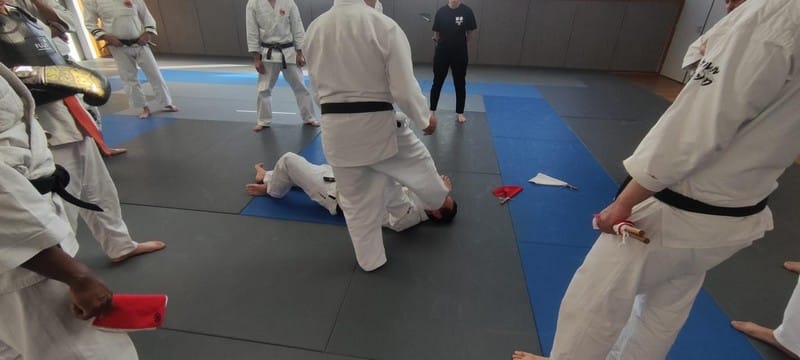 Il y a eu des mises en situation réelle avec 2 combattants en action afin que les arbitres puissent prendre des décisions. Des cas spécifiques ont été abordés, tels que les situations interdites et avec l’explications des différentes sanctions qui vont avec.