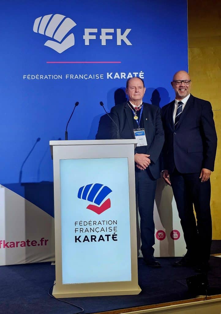 Cette distinction prestigieuse vient récompenser un engagement remarquable au service du karaté et des disciplines associées. Elle honore un parcours exemplaire, marqué par des années d’investissement, de rigueur, de passion et de fidélité aux valeurs de notre discipline.