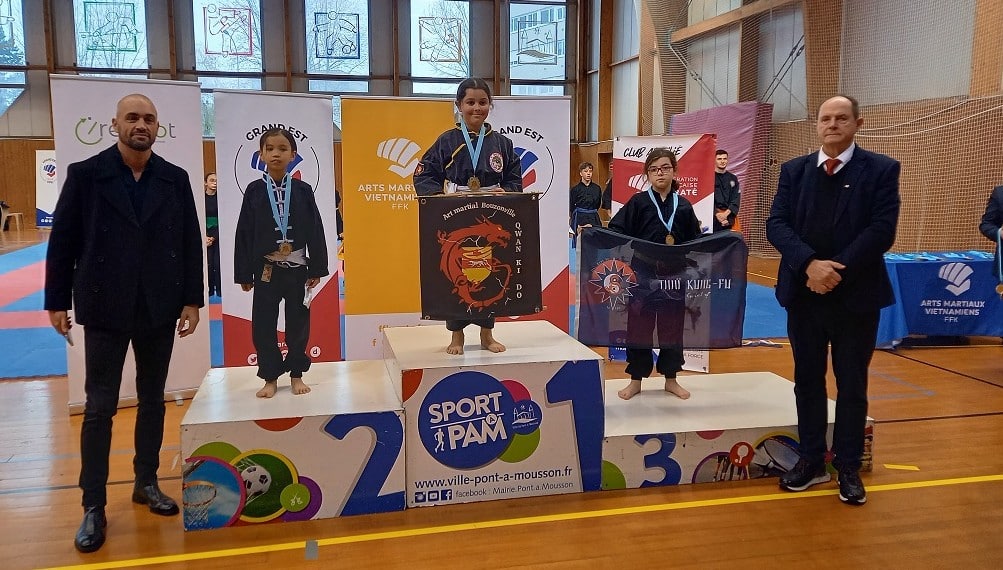 La deuxième partie de la matinée voyait défiler les Quyen individuel mains nues. Vers 11h 30 la deuxième remise de médailles soldait la partie technique.