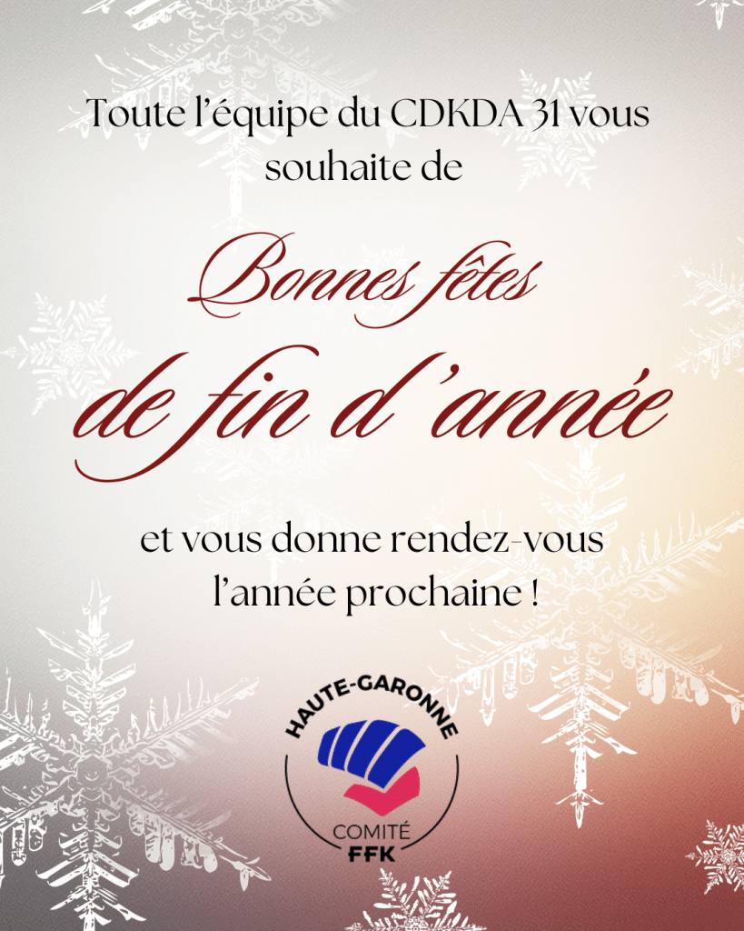 Toute l’équipe du CDKDA 31 vous souhaite de très belles fêtes, remplies de repos, de partage et d’énergie pour attaquer la nouvelle année 🥋🎄