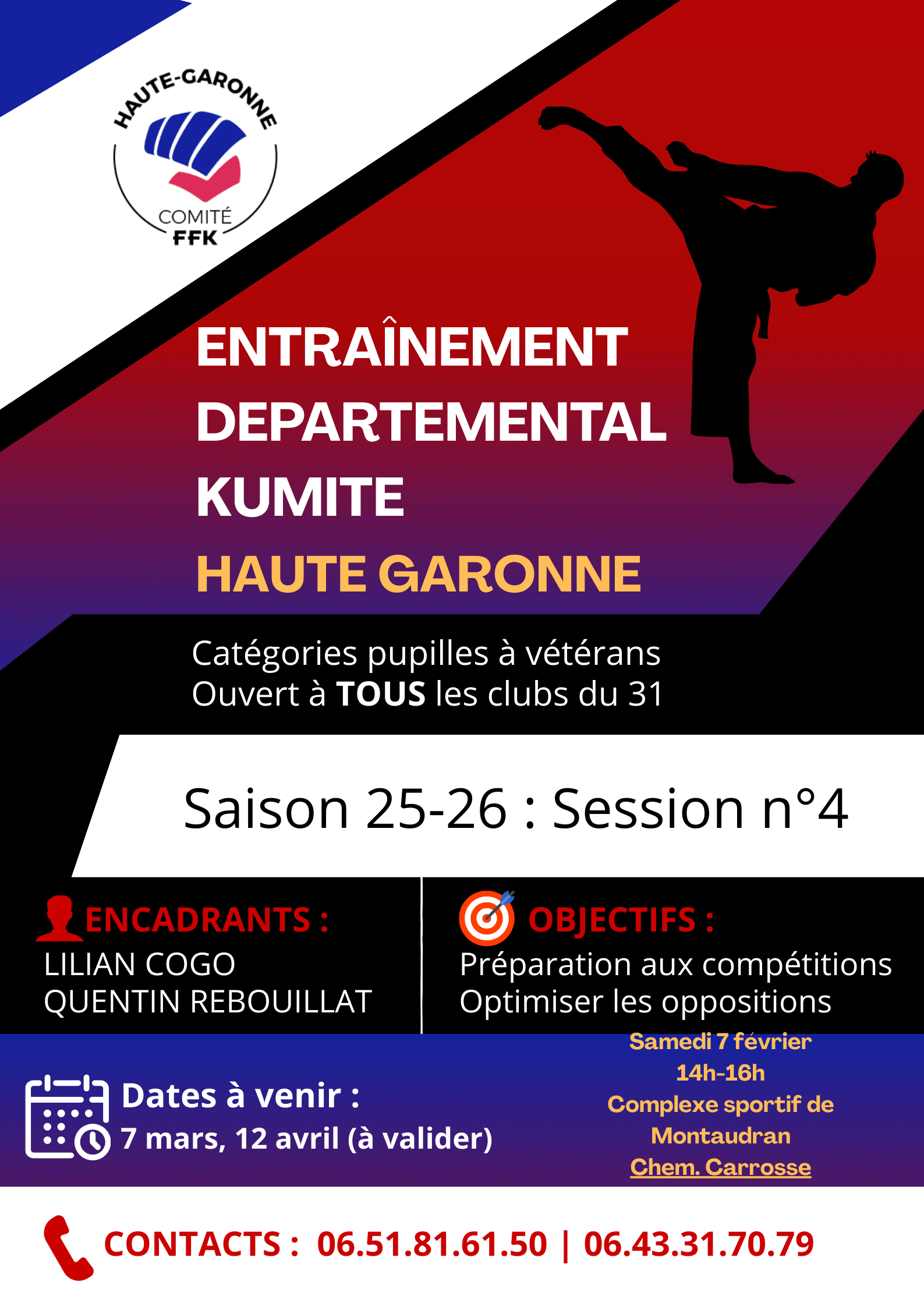 Invitation à l’entraînement départemental Kumite – Session n°4