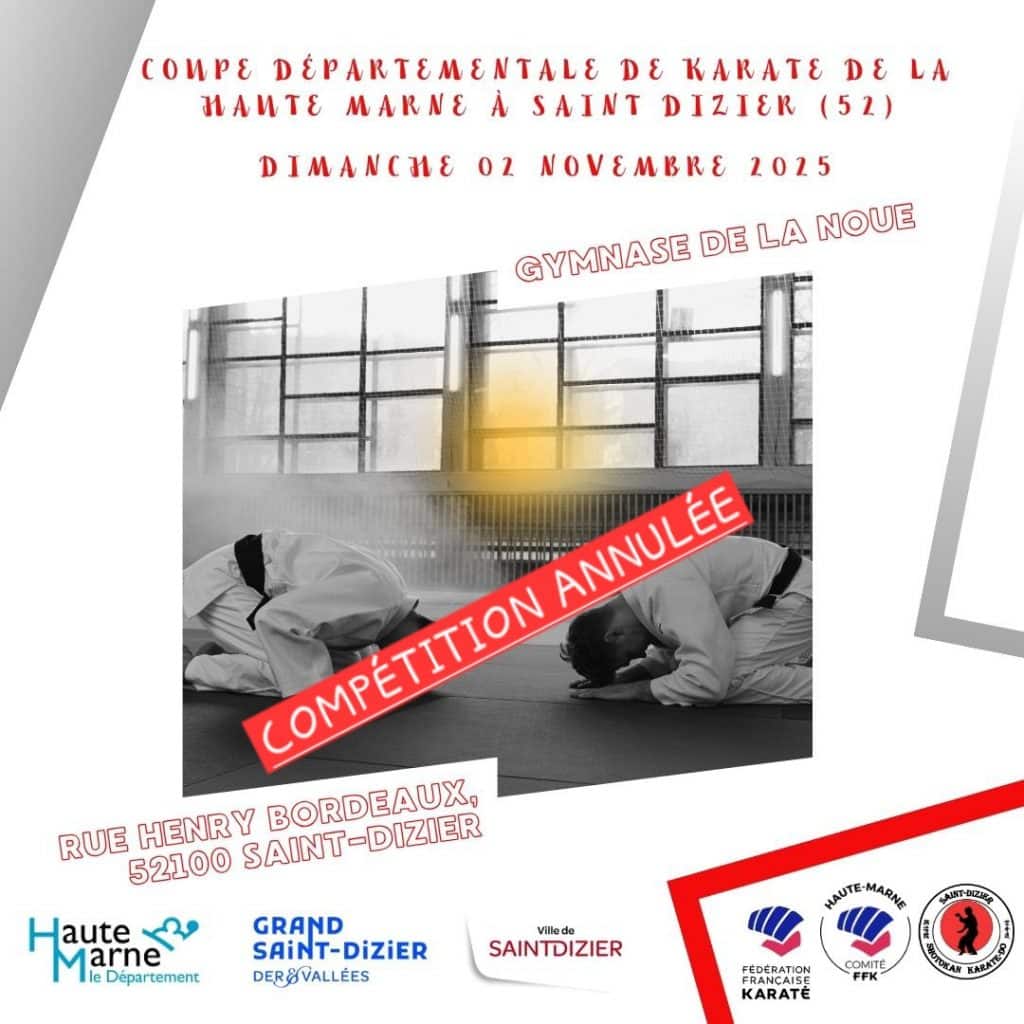 Annulation Coupe Départementale de la Haute-Marne en Karaté à Saint-Dizier 1 octobre 2025 Actualités Compétitions Karaté