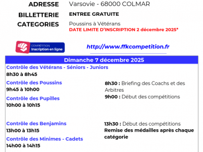 Mme Carbonnel Fanny, responsable de l’arbitrage du CDK 68, animera un stage d'arbitrage, conjointement avec le CDK67, le 5 octobre 2025 à la salle Alfred Kastler d'Horbourg-Wihr. Cette formation vous est proposée en tout début de saison car une nouvelle réglementation fédérale vient d’être mise en ligne par la fédération et déjà des interrogations se [...]