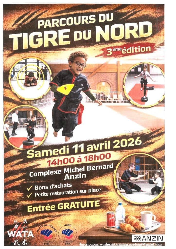 27 février 2026 Stages Wushu PARCOURS DU TIGRE DU NORD SAMEDI 11 AVRIL 2026 de 14h à 18h ANZIN – Complexe Michel Bernard
