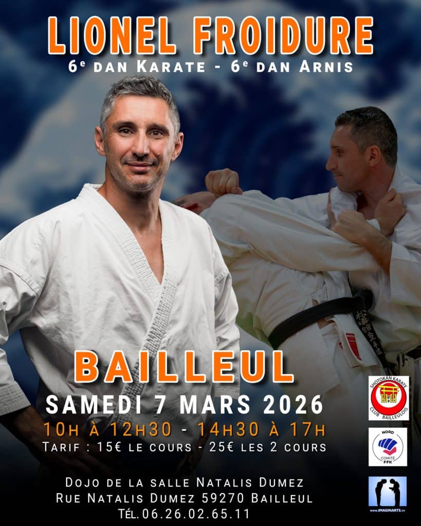 Suite au succès du stage de l’année dernière , Lionel Froidure , 7ème dan, vous propose un stage de Karaté axé sur le combat le matin et plus sur la partie technique l’après midi