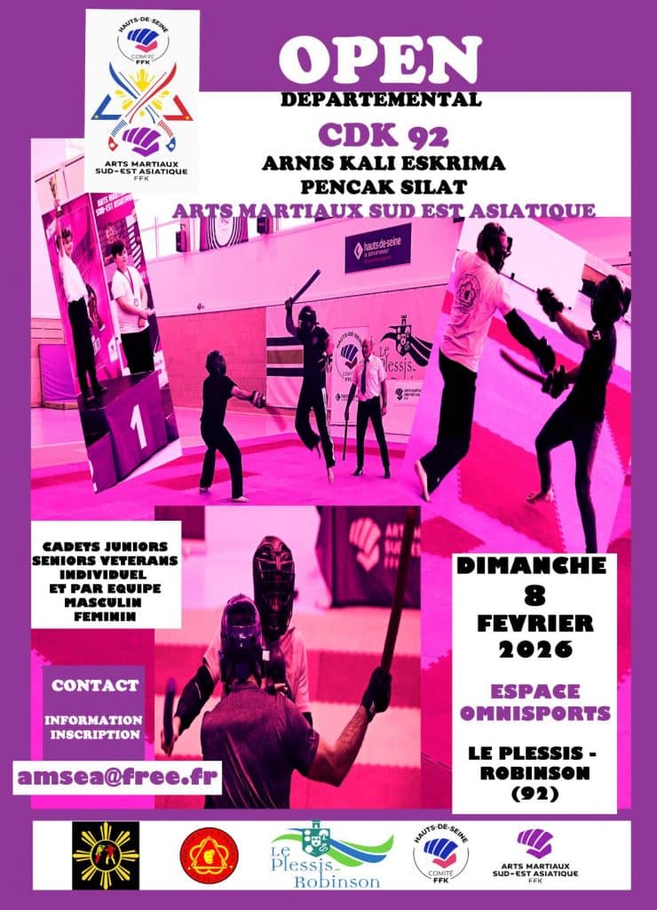 Le club de l’A W T E A 92 en collaboration avec le CDK92 organise un Open Départemental de Arnis Kali Escrima et Pencak Silat le dimanche 8 février 2026.