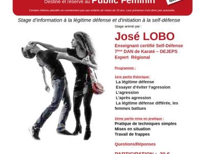 L’ASBR organise un stage de self-défense féminine animé par José LOBO (7ème dan – enseignant certifié Self-Défense) le dimanche 8 mars 2026 de 9h00 à 12h00.