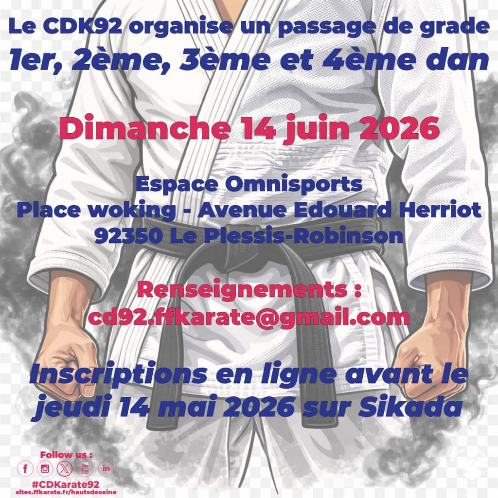 Le vendredi 17 avril 2026, le Comité départemental de Karaté des Hauts-De-Seine vous propose un stage de préparation et d’information aux grades AMV à Clamart de 20h00 à 22h00.