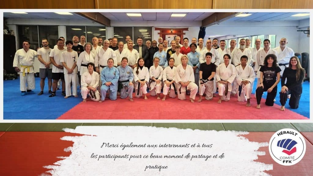 Nous remercions chaleureusement Monsieur Deli Muepu, Président du Comité Départemental de l’Hérault FFKaraté, et Madame Nathalie Trotin, Directrice Technique Départementale, pour l’organisation et la coordination de ce stage.
