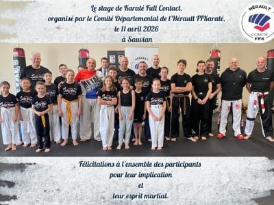 Le stage de Karaté Full Contact, organisé par le Comité Départemental de l’Hérault FFKaraté, le 11 avril 2026 à Sauvian, a rencontré un franc succès, réunissant un large public dans une ambiance à la fois studieuse et conviviale.