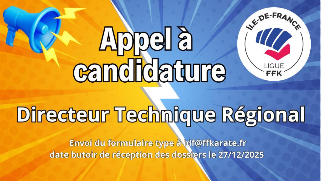 Les candidats doivent transmettre au Président de la Ligue Régionale Ile de France de Karaté et DA  idf@ffkarate.fr leur lettre de candidature, accompagnée d’un CV, au plus tard le 27 décembre 2025.