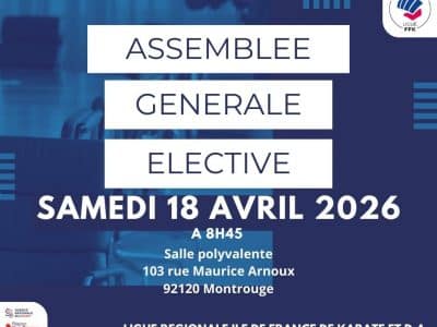 Pour des raisons logistiques, nous sommes dans l’obligation de décaler l’Assemblée Générale Élective de la Ligue Régionale Ile-de-France de Karaté et Disciplines Associées au samedi 18 avril 2026.