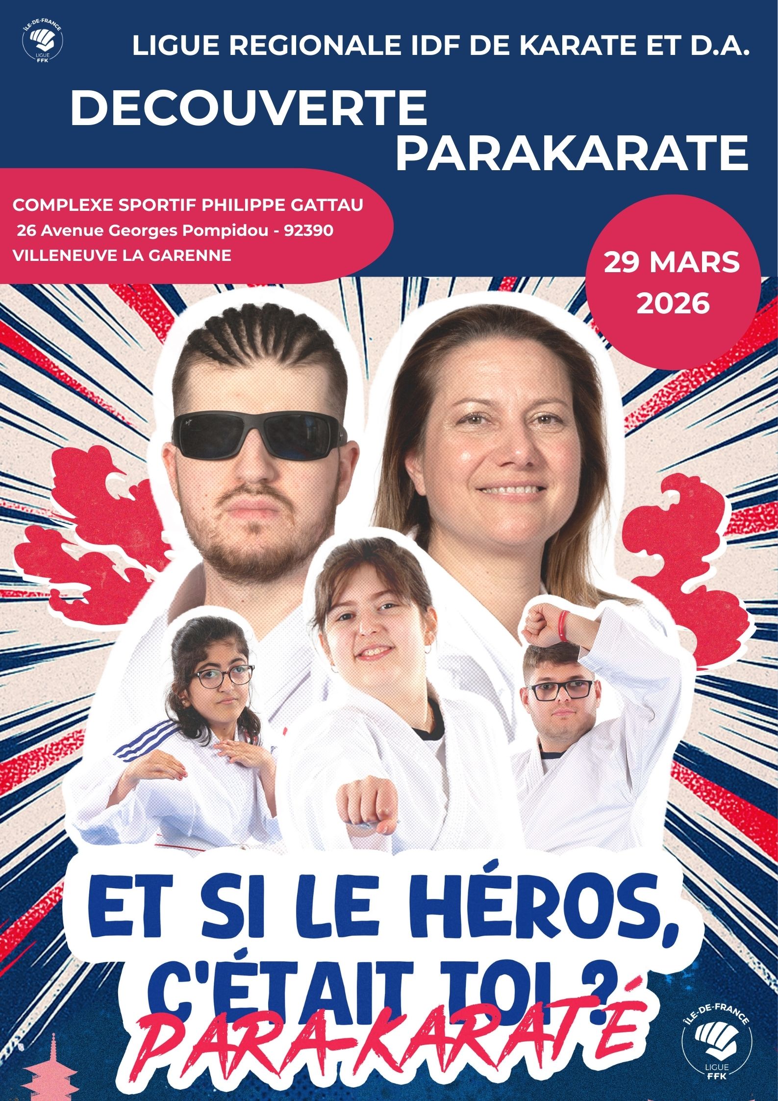 ATELIERS « DECOUVERTE PARAKARATE » Date Dim. 29 Mars 2026 de 12h à 16h Lieu VILLENEUVE LA GARENNE26 AVENUE GEORGES POMPIDOU 92390 VILLENEUVE-LA-GARENNE