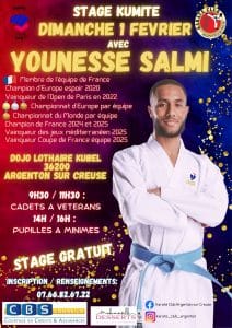 Le club de karaté d’Argenton Sur Creuse a l’honneur d’accueillir Younesse Salmi pour un stage exceptionnel le dimanche 01 février.