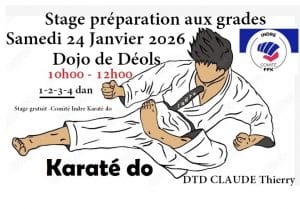 Stage préparation aux grades (candidats) avec Thierry Claude Date Sam. 24 Janvier 2026 de 10h à 12h Lieu Déols