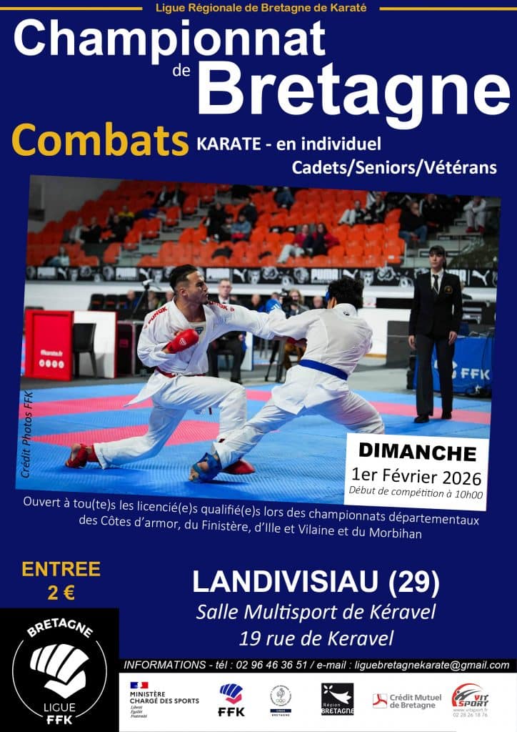 CHAMPIONNAT DE BRETAGNE COMBAT CADETS/SENIORS/VETERANS INDIVIDUEL Date Dim. 1 Février 2026 Lieu SALLE KERAVEL- LANDIVISIAU