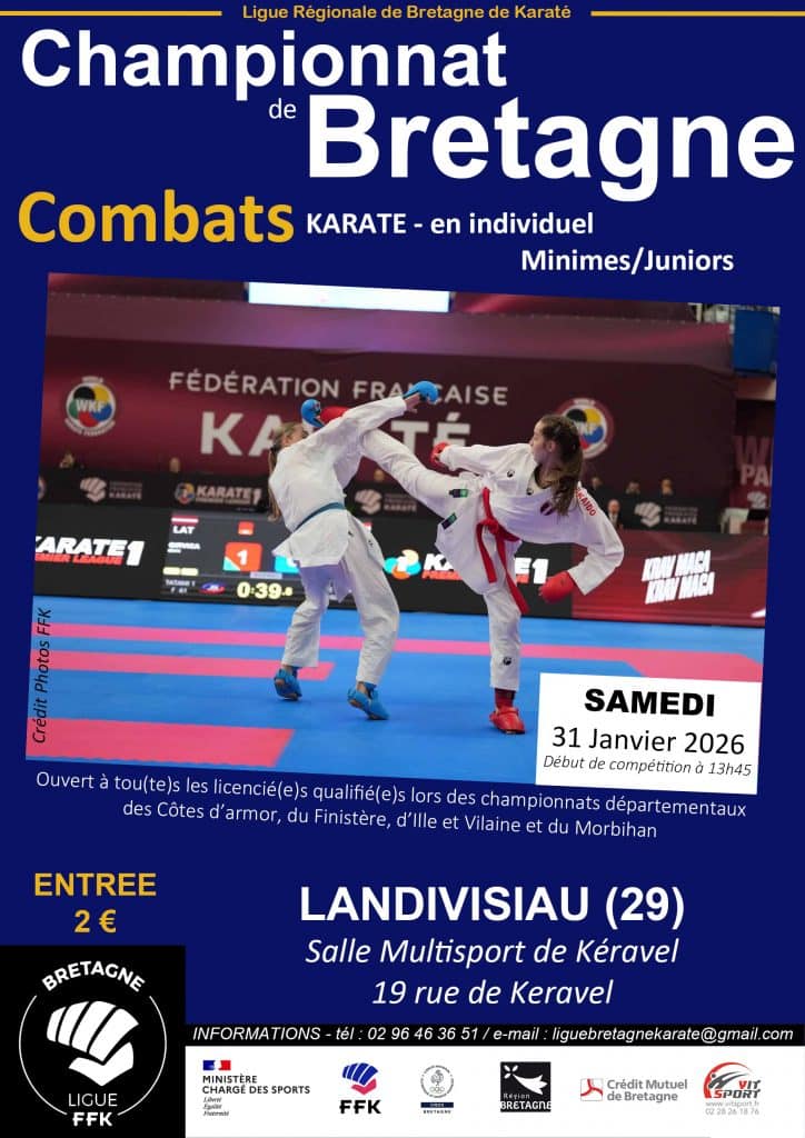 CHAMPIONNAT DE BRETAGNE COMBAT MINIMES/JUNIORS INDIVIDUEL Date Sam. 31 Janvier 2026 Lieu SALLE KERAVEL- LANDIVISIAU