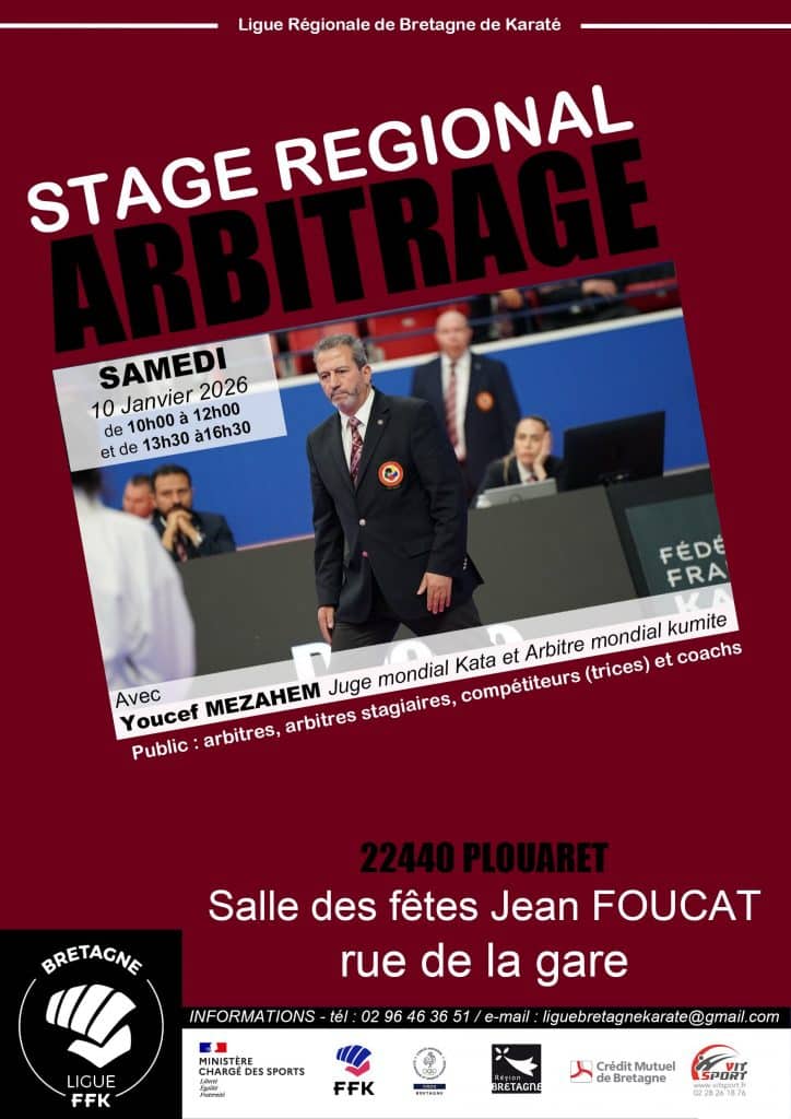 STAGE D’ARBITRAGE / YOUCEF MEZAHEM Date Sam. 10 Janvier 2026 de 10h à 16h30 Lieu salle des fete jean foucat