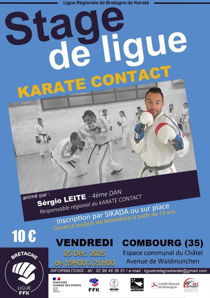 STAGE REGIONAL KARATE CONTACT Date Ven. 5 Décembre 2025 de 19h à 21h Lieu Espace communal du Chatel - Combourg