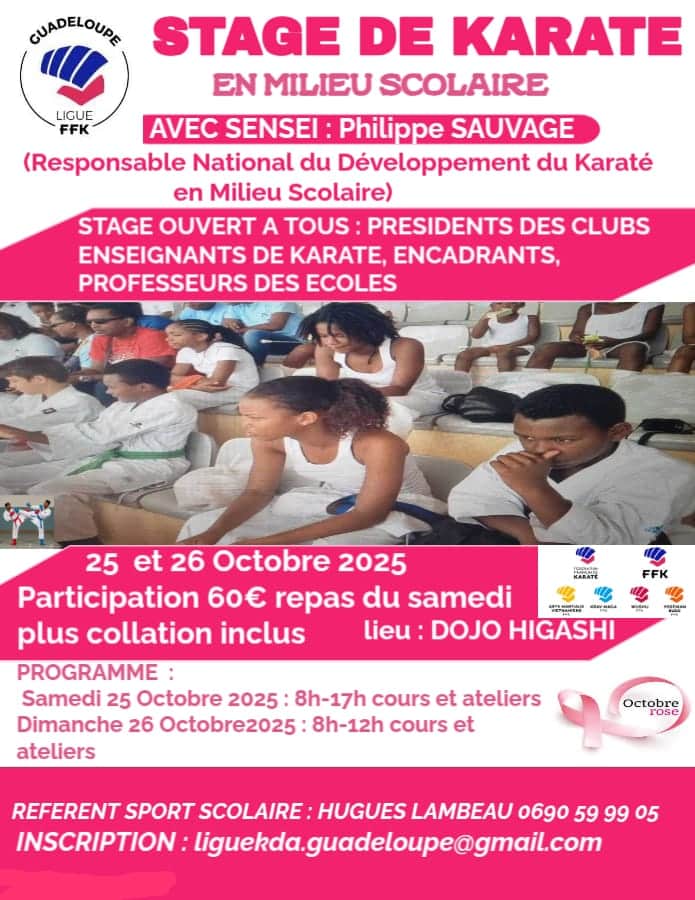Stages 25 et 26 octobre 2025 – Stage de Karaté en milieu scolaire avec Philippe SAUVAGE Senseï En savoir plus