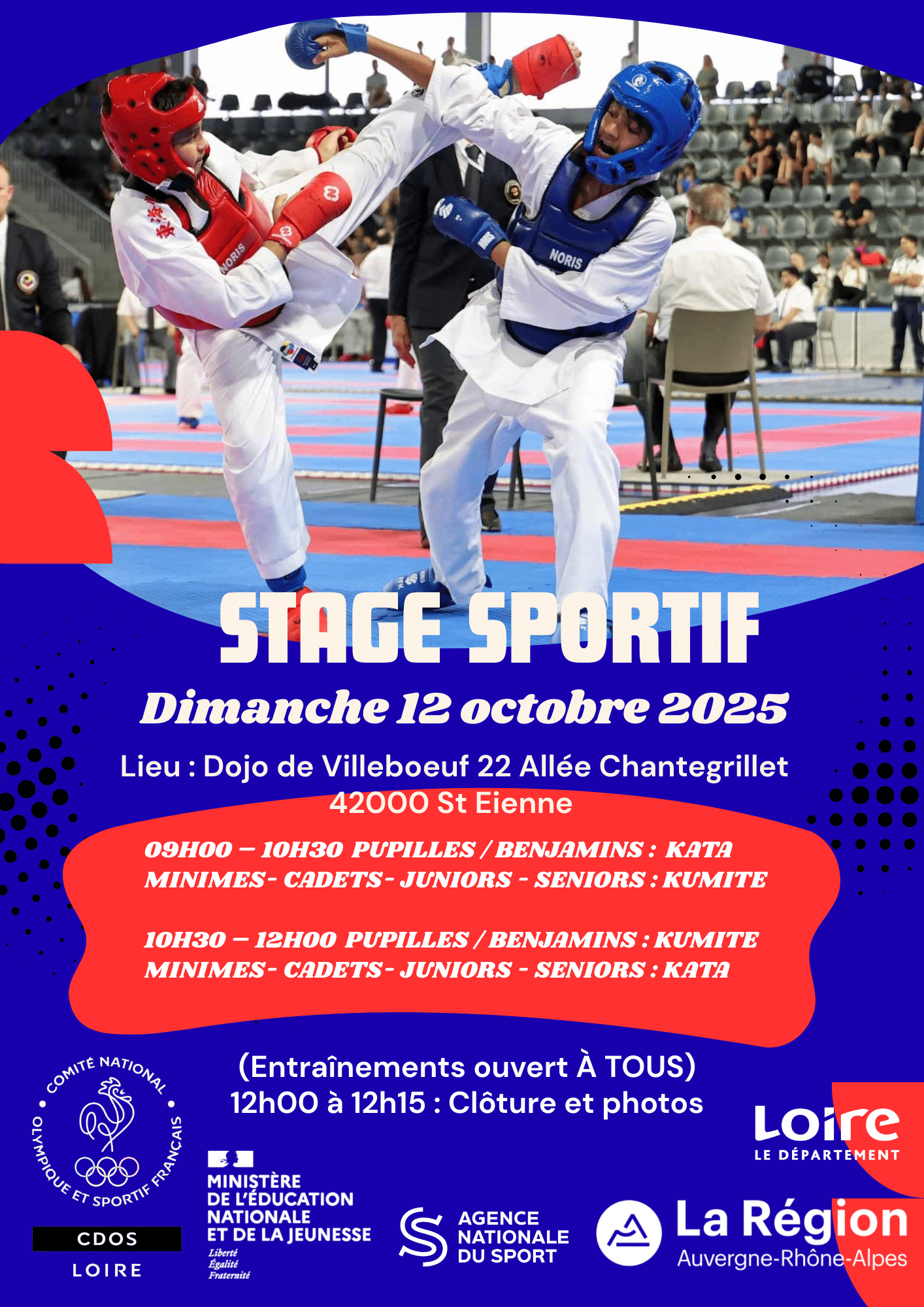 Entraînement départemental Compétttion Katas combats Date Dim. 12 Octobre 2025 de 09h à 12h Lieu Saint Etienne Entraînement départemental
