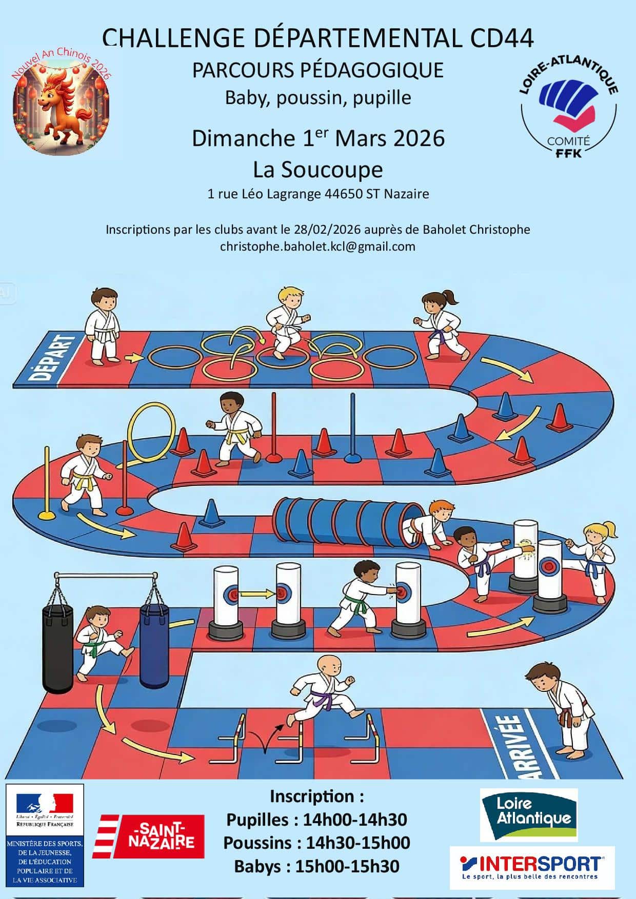 Pour la 1ère fois, le CDK 44 et la commission enfants organisent un challenge départemental à destination des mini poussins, des poussins et des pupilles.